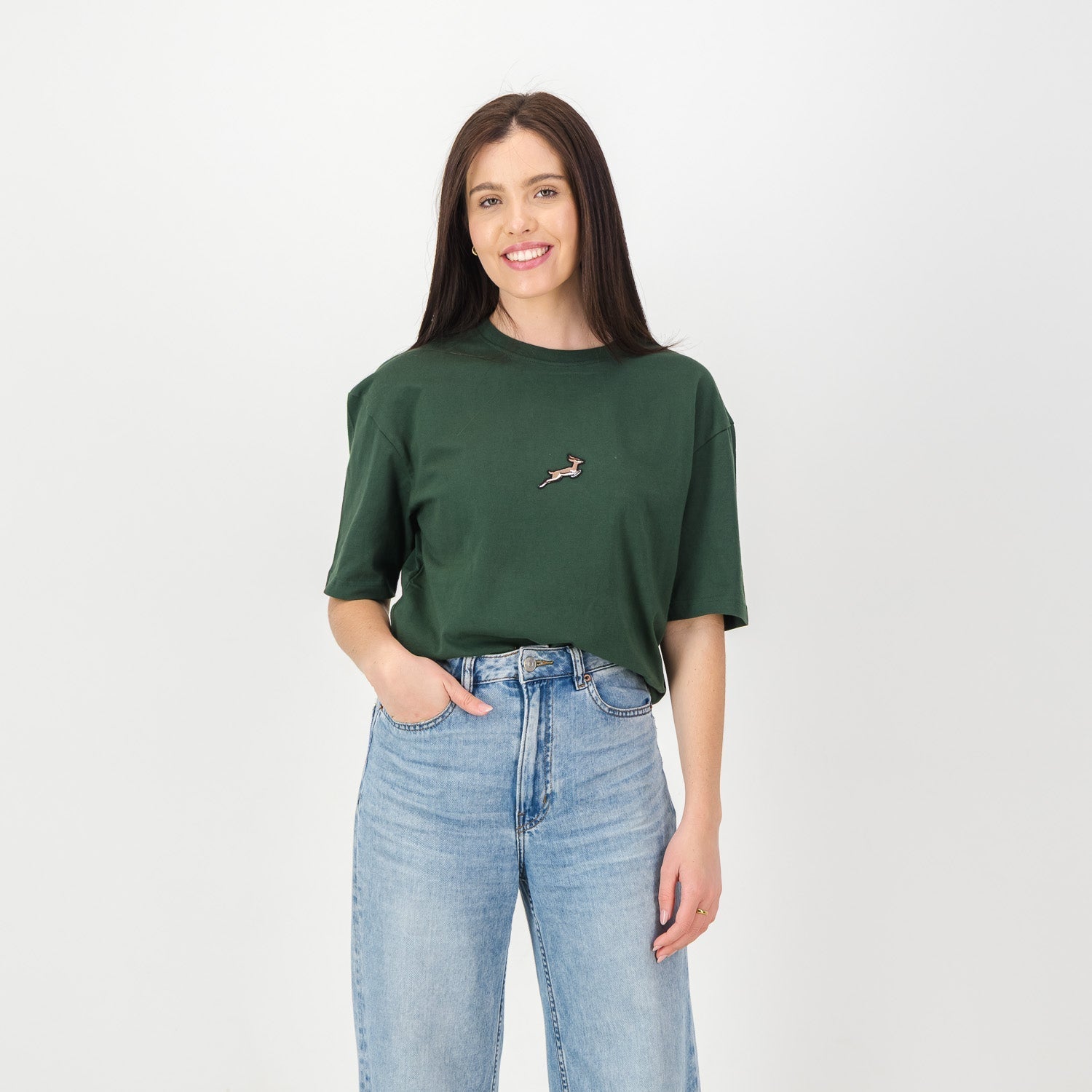 The Boxy Fit Tee is a summer essential. Made from heavyweight cotton with a luxurious suede finish, this garment caters to trendsetters and devoted Springbok fans alike, elevating leisurewear to new heights. Featuring a newly stylised Springbok embroidered badge in this season's vibrant colours, it perfectly blends style and team pride. Available in white, this tee is ideal for showcasing your love for the Springboks this summer.